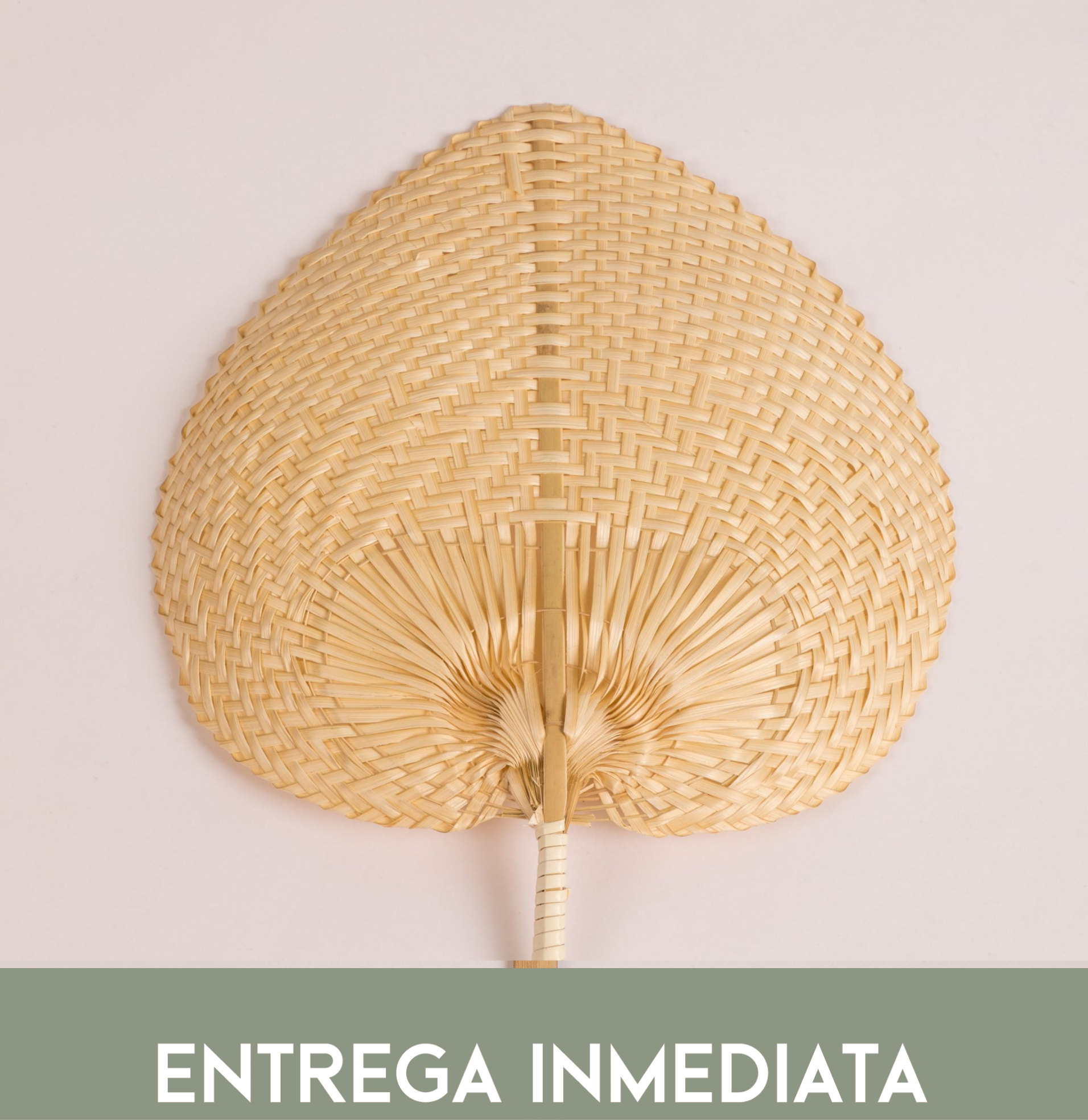 - Abanico de palma tono dorado, ideal para eventos de calor.